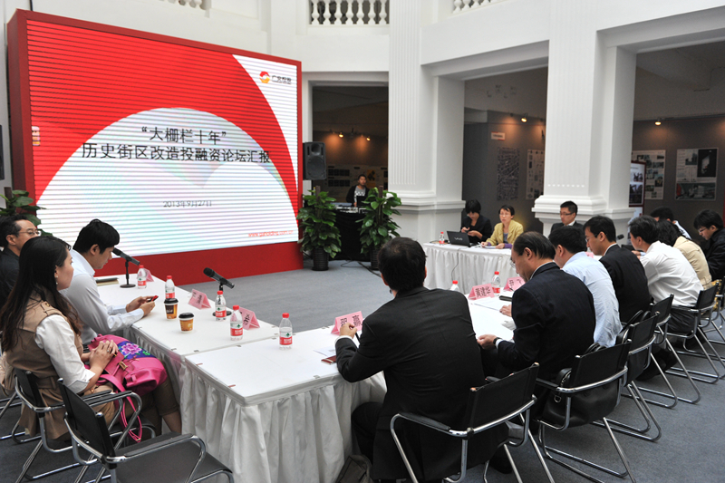 大柵欄琉璃廠建設(shè)指揮部常務(wù)副指揮長王志忠首先給介紹了大柵欄文保區(qū)項(xiàng)目的背景。隨后,與會(huì)嘉賓分別從盈利模式、運(yùn)營模式、各種資金成立財(cái)團(tuán)組合支持歷史街區(qū)的改造、存量資產(chǎn)的整合、退出機(jī)制等方面進(jìn)行了闡述。給我們在歷史街區(qū)改造的投融資模式進(jìn)行了多方位的啟發(fā)和總結(jié)。最后集團(tuán)董事長對(duì)歷史街區(qū)的改造在控股集團(tuán)的地位以及項(xiàng)目前景和展望方面進(jìn)行了總結(jié)發(fā)言。會(huì)后會(huì)嘉賓們對(duì)2013年北京國際設(shè)計(jì)周“大柵欄新街景”設(shè)計(jì)之旅進(jìn)行了實(shí)地探訪,對(duì)歷史街區(qū)改造表現(xiàn)出濃厚的興趣并表達(dá)了進(jìn)一步合作的愿望。
