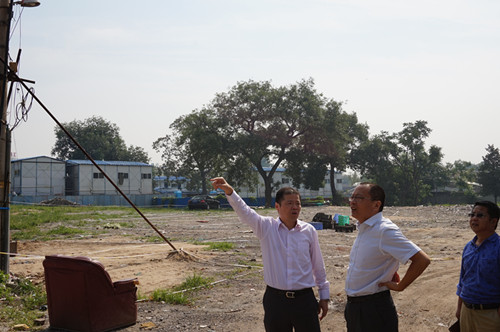 2015年9月14號,北京市國土資源局西城分局局長李偉、副局長黃東華、土地整理儲備中心主任王東等領(lǐng)導(dǎo)到大柵欄C3、H地塊及糧十旅館修繕現(xiàn)場調(diào)研指導(dǎo)工作。