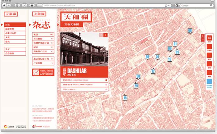 大柵欄官方網(wǎng)站于2014年6月正式對外運營,網(wǎng)站單日訪問量最高為9000次,設(shè)計周期間總訪問量高達33.8萬次,大柵欄網(wǎng)站憑借其獨特精美的設(shè)計榮獲2014紅點獎傳播設(shè)計獎。