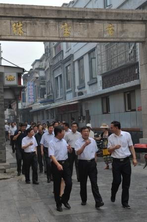 6月27日上午,北京市人大常委會(huì)主任杜德印同志來到大柵欄投資公司和大柵欄永興置業(yè)公司的“大柵欄·北京坊”、勸業(yè)場(chǎng)、珠寶市糧食店街、楊梅竹斜街等項(xiàng)目視察,隨后聽取了推進(jìn)大柵欄琉璃廠地區(qū)保護(hù)復(fù)興市人大代表建議辦理工作情況的匯報(bào)。市發(fā)改委主任張建東、西城區(qū)領(lǐng)導(dǎo)王寧、王少峰、蘇東、王旭、李巖等同志以及大柵欄琉璃廠建設(shè)指揮部、大柵欄街道和廣安控股主要領(lǐng)導(dǎo)陪同視察。