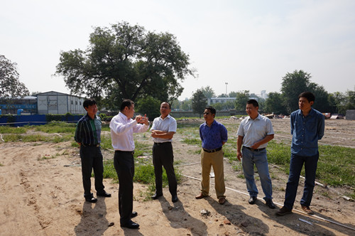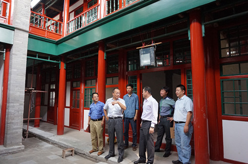 2015年9月14號,北京市國土資源局西城分局局長李偉、副局長黃東華、土地整理儲備中心主任王東等領(lǐng)導(dǎo)到大柵欄C3、H地塊及糧十旅館修繕現(xiàn)場調(diào)研指導(dǎo)工作。