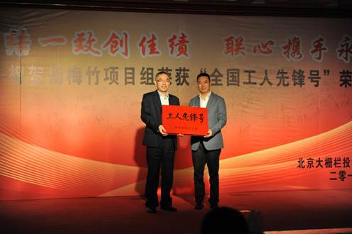 2016年10月20日,北京大柵欄投資有限責(zé)任公司楊梅竹項目組榮獲中華全國總工會頒發(fā)的“全國工人先鋒號”榮譽(yù)稱號的全員會議成功舉行。北京廣安控股有限公司領(lǐng)導(dǎo)班子以及北京大柵欄投資有限責(zé)任公司及下屬子公司全體員工參加了會議。