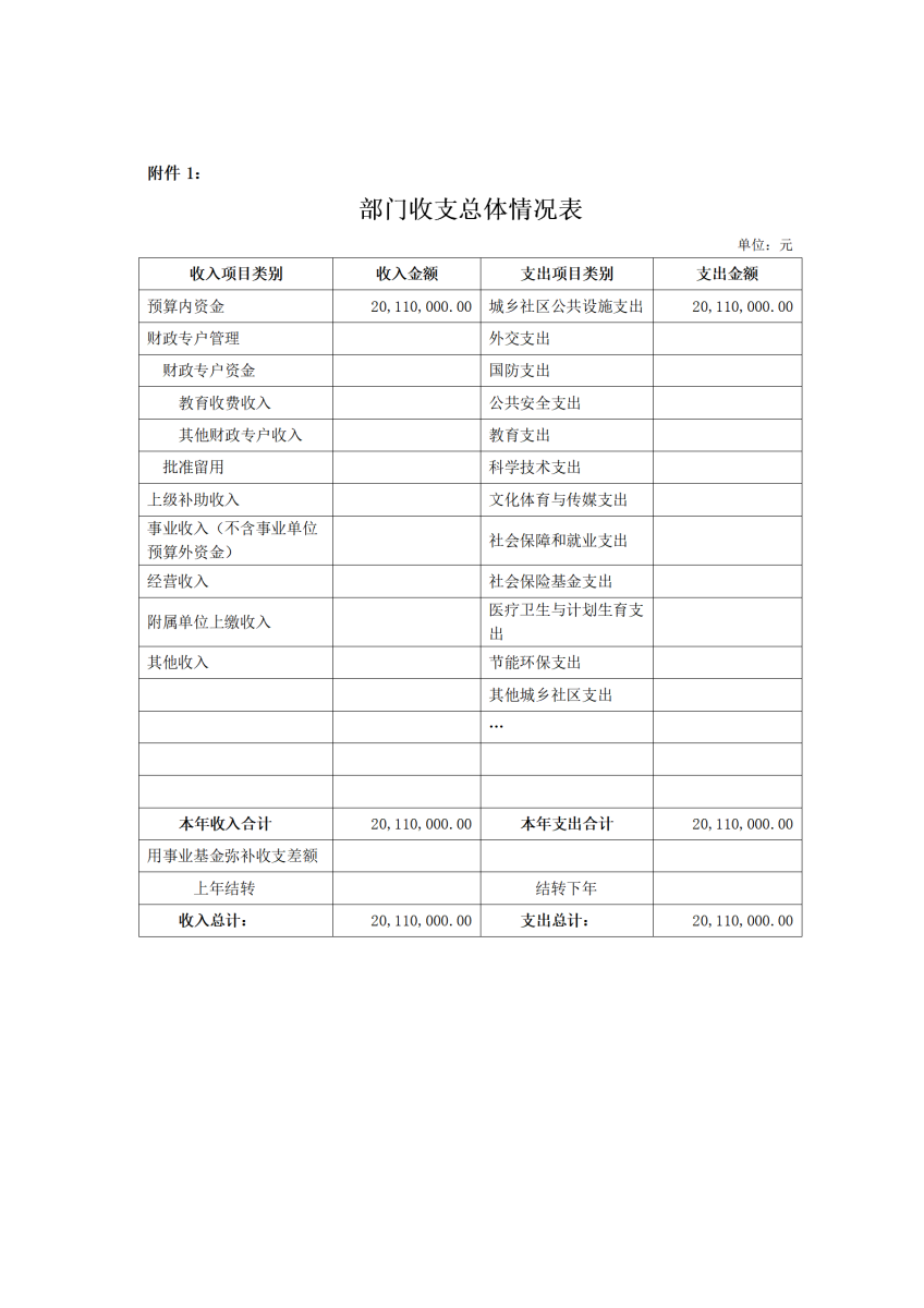 附件1、部門收支總體情況表