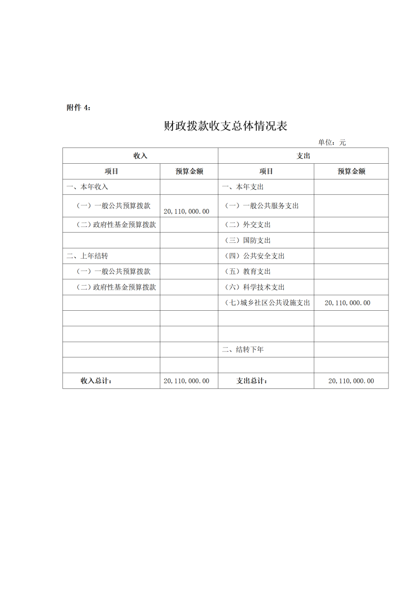 附件4、財政撥款收支總體情況表