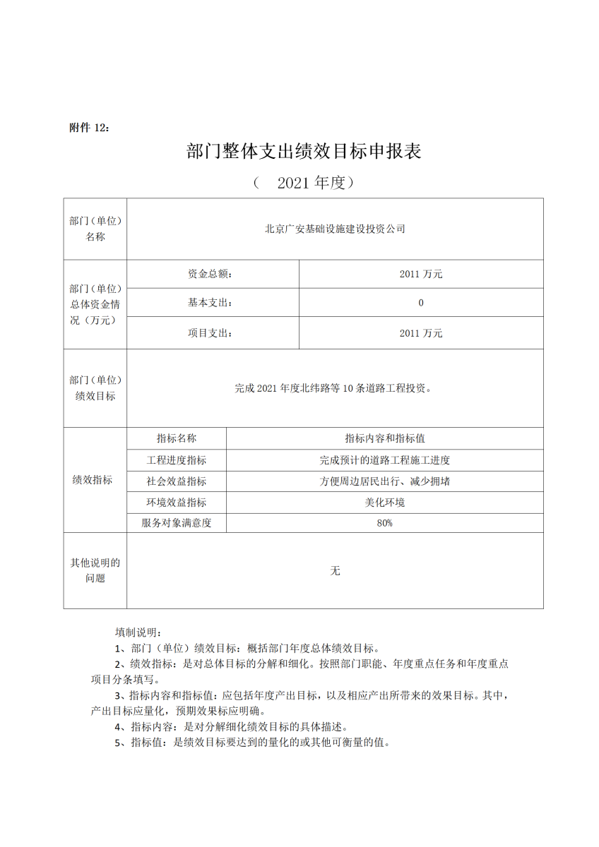 根據(jù)區(qū)發(fā)改資金安排及工程進度,北京廣安基礎(chǔ)設(shè)施建設(shè)投資公司2021年總支出安排2011萬元,與2020年相比有所減少,原因是2020年預(yù)算中包含了需撥付西城區(qū)征收辦的征收資金。