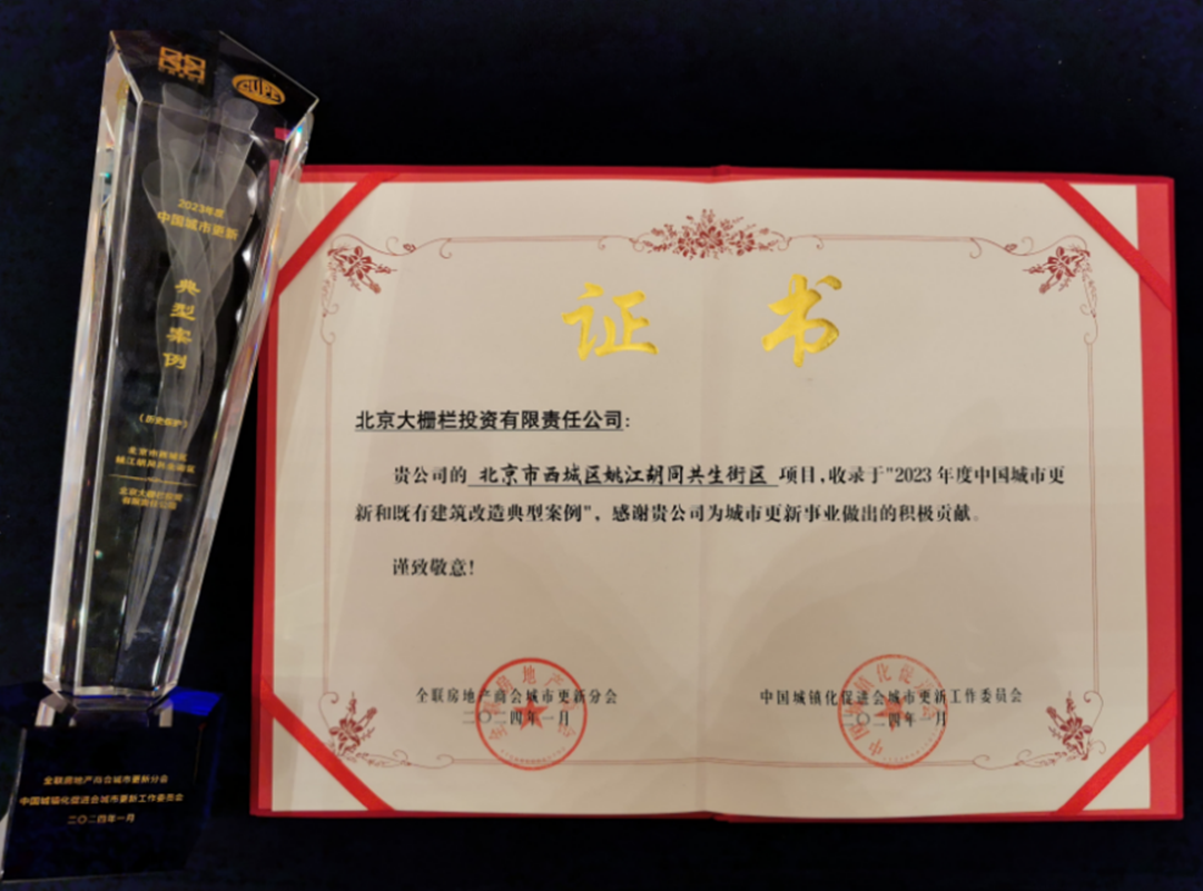 該項目的成功實施,是廣安集團對延續(xù)古城風(fēng)貌、催生古城活力、提升人居環(huán)境、激發(fā)居民改善家園參與意識的一次有力探索和實踐,為今后的城市更新工作提供了可復(fù)制的北京樣本,該項目將收錄于“2023年度中國城市更新和既有建筑改造典型案例”。