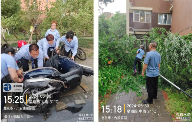 強(qiáng)降雨大風(fēng)來(lái)臨后,天寶物業(yè)公司又積極組織各項(xiàng)目部職工頂風(fēng)冒雨加大公區(qū)、中控機(jī)房的巡視力度和頻次,對(duì)突發(fā)的樹(shù)木倒塌、低洼點(diǎn)位積水等情況派專人查看并在現(xiàn)場(chǎng)值守,提醒居民注意安全,同時(shí)立即協(xié)調(diào)配合電力、園林、市政等有關(guān)部門(mén)對(duì)倒塌的樹(shù)木、低洼點(diǎn)位積水進(jìn)行清理,確保居民生命財(cái)產(chǎn)安全。